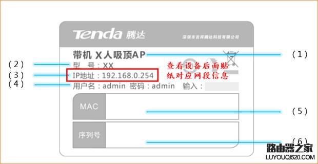7、查看設(shè)備貼紙后面地址信息。IP地址為192.168.0.254。在前面對(duì)應(yīng)的地址欄輸入對(duì)應(yīng)的地址信息。
