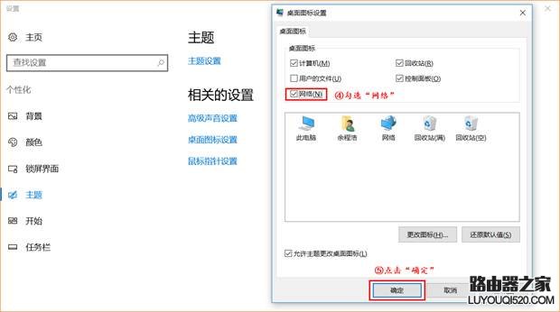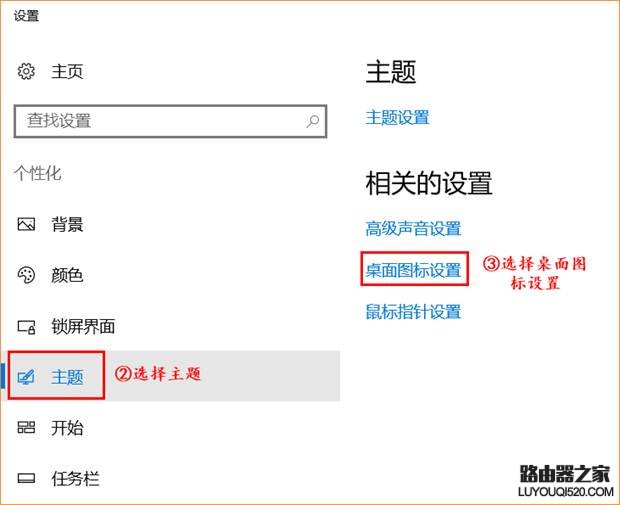 2、選擇“選擇主題”,繼續(xù)選擇“桌面圖標(biāo)設(shè)置”