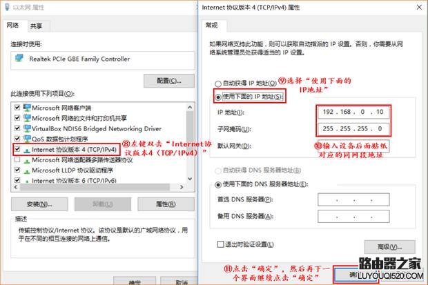 此地址和你需要進(jìn)入的設(shè)備界面地址在同一個(gè)網(wǎng)段。例如需要進(jìn)入的設(shè)備地址為192.168.10.1。那么此處配置的地址就為192.168.10.2或者192.168.10.10。最后一位只要是2-254之間都可以。