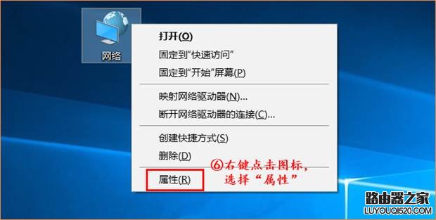 4、回到電腦桌面上,找到“網(wǎng)絡(luò)”圖標(biāo)。右鍵點(diǎn)擊選擇“屬性”。