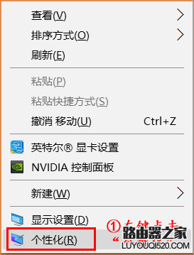 1、在電腦桌面空白處單擊鼠標(biāo)右鍵,左鍵點(diǎn)擊“個(gè)性化”