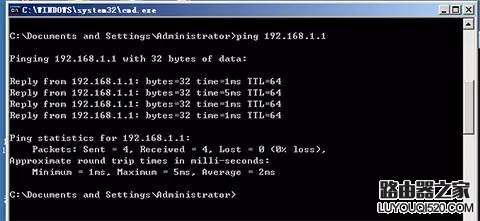 上面查看到網關后,輸入ping 192.168.1.1,看看連通性,如果下面顯示超時則是沒連通。