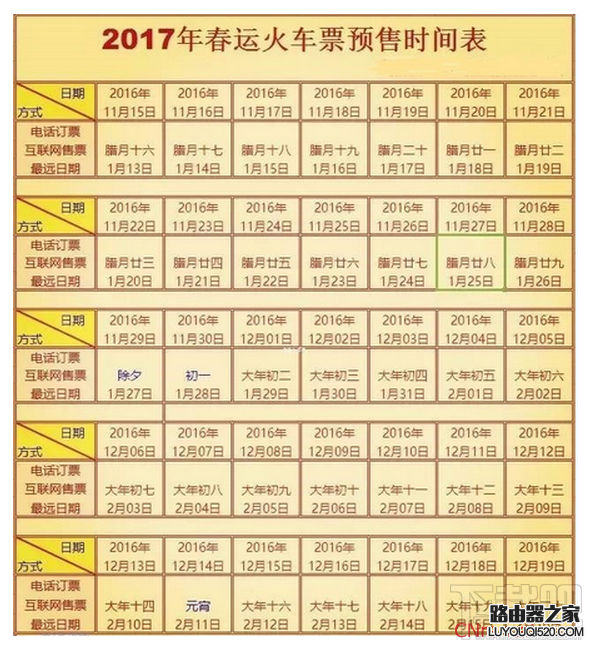 以上就是小編為大家帶來的2017年春節火車票什么時候發售和2017春節火車票提前幾天預售的相關介紹,希望可以幫助到大家!