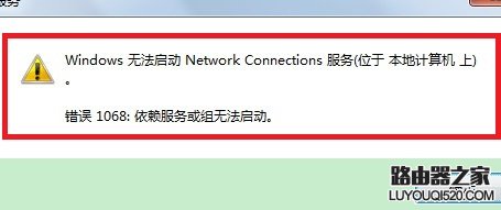 在服務(wù)中啟動(dòng)Network Connections服務(wù),提示無(wú)法啟動(dòng):