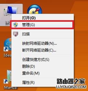 1. 使用鼠標(biāo)右鍵單擊桌面或開(kāi)始菜單中的計(jì)算機(jī)圖標(biāo),點(diǎn)擊“管理”,如圖: