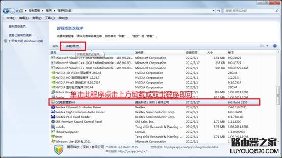 3.雙擊所卸載的程序名稱或點(diǎn)擊程序名稱點(diǎn)擊上方 “卸載/更改”即可。