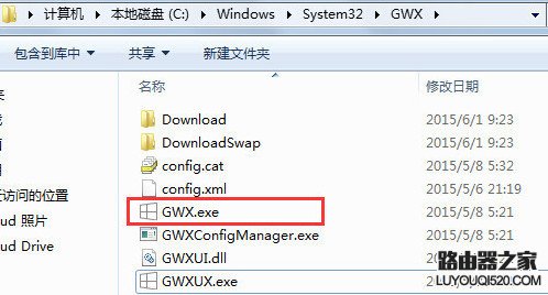 3、統(tǒng)中還存在一個名為“GWX.exe”的升級助手程序,位置在C:/Windows/System32/GWX。如果你已經(jīng)取消了Win10升級提示,這個程序?qū)δ銇碚f也是個雞肋,可以刪掉。