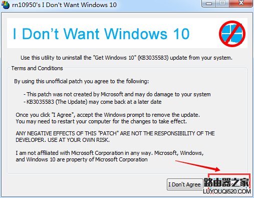 還有一個最簡單的方法就是利用win10推送關(guān)閉軟件I Don't Want Windows 10來關(guān)閉提示,這個小軟件的作用就是自動幫你刪除KB3035583補(bǔ)丁。刪除之后重啟一下,你就會發(fā)現(xiàn)煩人的Windows 10升級提醒不見了。