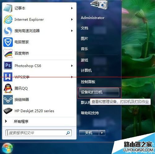 6、點擊桌面左下角“開始”-“設備和打印機”并點擊進入;