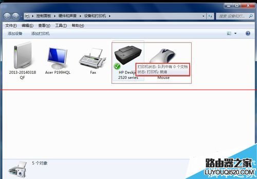 7、將鼠標放在打印機“圖標”上停留3秒,查看打印機狀態,顯示為“就緒”即可,若未顯示則需重啟計算機一次。