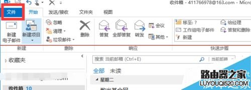 3、現在看下一下怎么 從一開始進入設置界面 設置outlook的自動下載郵件圖片功能,單擊“ 文件"