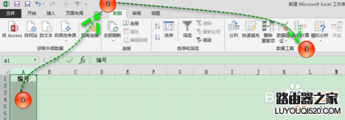 首先,在A列上方插入光標選中A列,在excel的菜單欄切換到“數據”選項卡,找到“數據工具”菜單組。