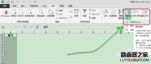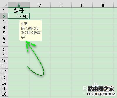 示例操作目的:以A列為號碼(編碼)列,要求是在A列只能鍵入5位數。
