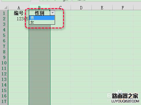 設置成功后點擊B列單元格便會彈出男or女的二選一項了。