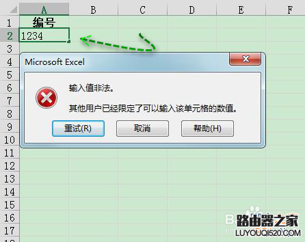 再次嘗試輸入“1234”,look,錯誤警告便會以你設置的內容出現了。