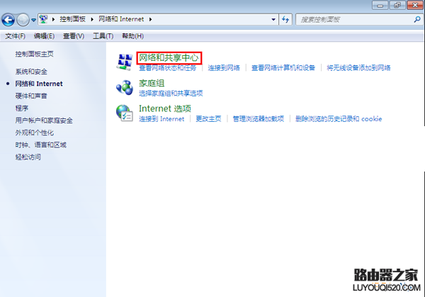 3.在打開(kāi)的界面中點(diǎn)擊“網(wǎng)絡(luò)和共享中心”