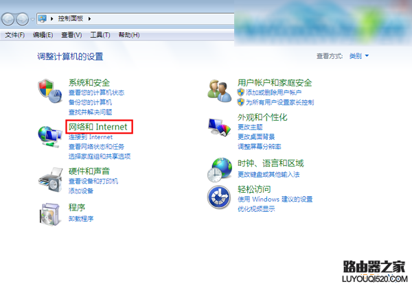 2.選擇“網(wǎng)絡(luò)和Internet”選項(xiàng)