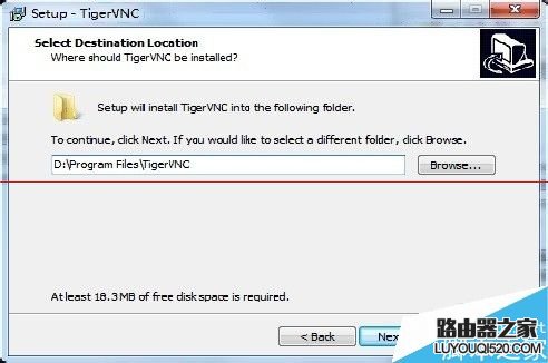 4、選擇TigerVNC的安裝路徑,我們這里選擇”D:/Program Files/TigerVNC“,點擊”Next“;點擊”Next“;