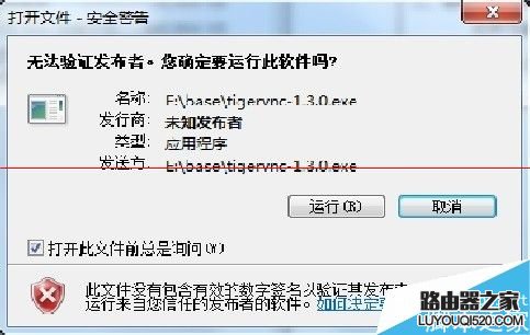 2、安裝TigerVN,打開下載的tigervnc-2.30.exe可執行文件。雙擊進行安裝,點擊“運行”;
