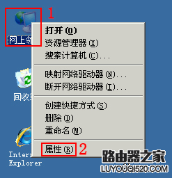 6.1 在系統桌面找到“網上鄰居”圖標并單擊鼠標右鍵,在彈出的菜單中選擇“屬性(R)”。如下圖所示:
