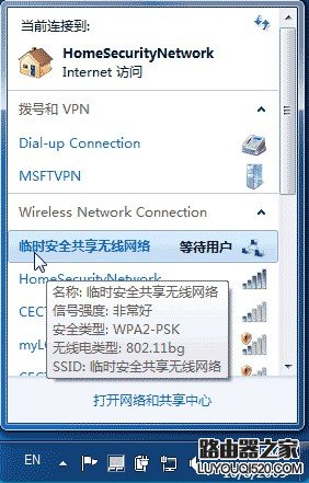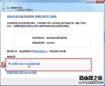 注意: 請記住安全密鑰,其他計算機需要通過此密鑰連接您的臨時網絡。