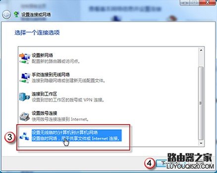 4.在向導中選擇 設置無線臨時(計算機到計算機)網絡,點擊 下一步