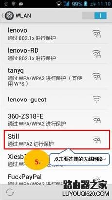 4. 找到在電腦上創建的臨時網絡的名稱(剛才創建的臨時網絡名稱為:Still),點擊連接,手機即可通過WiFi上網;如圖2-4到2-5所示: