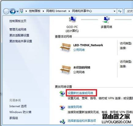 2. 在網絡和共享中心中點擊設置新的連接或網絡;如圖1-3所示:
