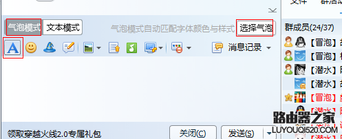 首先我們打開qq聊天對話框,點擊設置文字的圖表,此時會發現有:氣泡模式、文本模式。在普通的文本模式中我們可以設置字體的顏色、大小、粗細、斜體等。