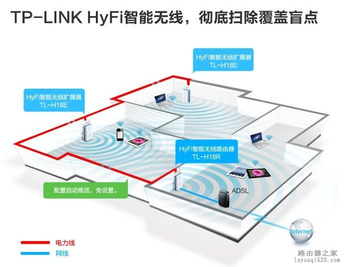 這個方法看介紹比方法一要好,電力傳輸信號沒得隔墻信號減弱之類的阻礙,讓每一個插座都可成為信號源,信號好不說又穩定,還免去了設置的煩惱,而且低輻射。
