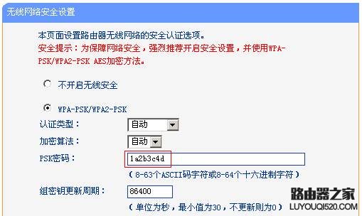 確認方法:登錄路由器管理界面,點擊 無線設置 >> 無線安全設置 中確認 無線密碼。如下圖所示: