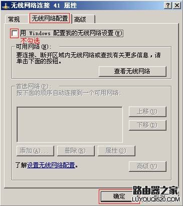 取消方法: 網上鄰居 右擊選擇 屬性右擊 無線網絡連接 并選擇 屬性,點擊 無線網絡配置,不勾選 Windows配置我的無線網絡設置,點擊 確定