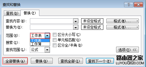 如果你想要替換整個工作薄的數據,你還需要點擊“選項”