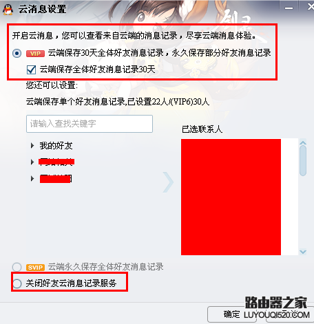 會員QQ用戶(VIP):云端保存30天全體好友消息記錄,永久保存部分好友消息記錄