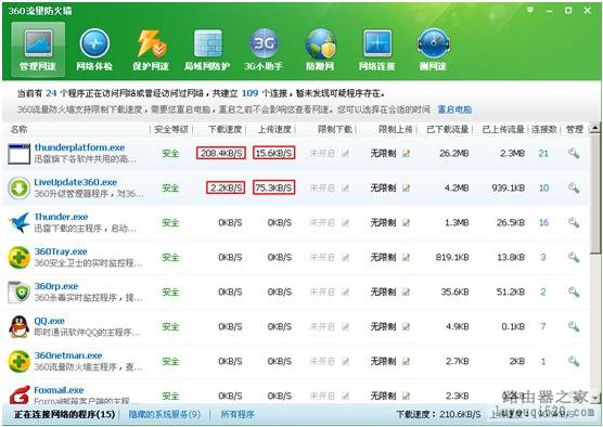 建議您安裝360安全衛士的流量防火墻功能監控各個軟件進程的流量,發現有此類軟件進程向外高速上傳時,打開360流量防火墻限制此進程的流量或通過任務管理器關閉此進程。