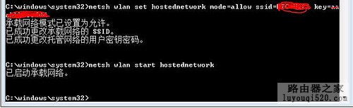 3、用以下命令啟動基站功能 netsh wlan start hostednetwork