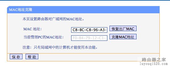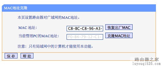 忽略原理,查出你現(xiàn)在上網電腦的MAC地址(在網絡中心提交注冊那個)填到上面,點保存就行了!記??!點保存!不是點“克隆MAC地址”!
