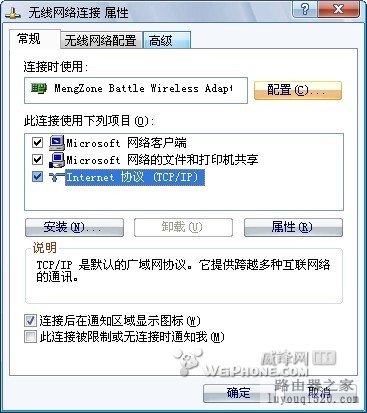 2我現在是用網線連上路由器上的網,.然后我要設置我的無線網絡連接的IP地址,點擊TCP協議 如圖2。