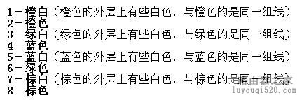 有了以上三個工具,怎么做網線了。我們這里只講家用的最普遍的做法,也是正確的做法。沒必要去做四芯的。 先用壓線鉗把網線制作成如上面圖片3。 網線有兩種做法,一種是交叉線,一種是平行線 交叉線的做法是:一頭采用568A標準,一頭采用568B標準 平行線的做法是:兩頭同為568A標準或568B標準,(一般用到的都是568B平行線的做法) 568A標準:綠白,綠,橙白,藍,藍白,橙,棕白,棕 568B標準:橙白,橙,綠白,藍,藍白,綠,棕白,棕 然后顏色的順序是:
