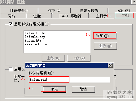 打開iis,選擇你的網站,右鍵選擇屬性,然后在“文檔”里添加“默認內容頁”然后“確定”,一般會添加index.php或者index.html等