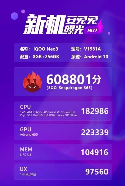 安兔兔官方正式放出Neo3跑分:608801