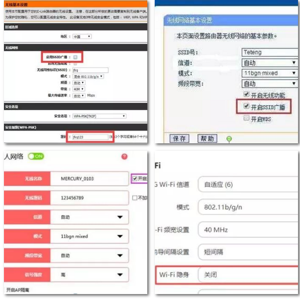 4、修改密碼,關閉廣播。由于不同品牌型號路由器設置界面不同,列舉以下幾種常見的方式: