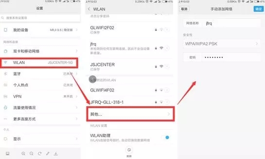 6、手機連接無線網絡。無線網絡隱藏后,無法通過搜索添加的方式連接,需要手動進行無線網絡的添加。操作方式如下: