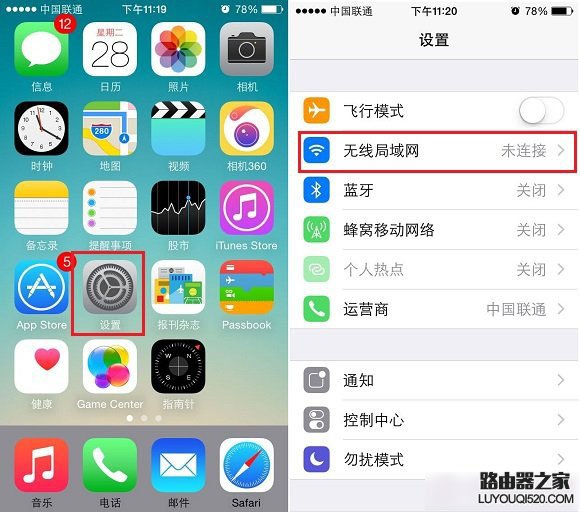 1、首先同樣是進(jìn)入iPhone手機(jī)【設(shè)置】,然后再進(jìn)入【無線局域網(wǎng)】設(shè)置,如下圖所示。