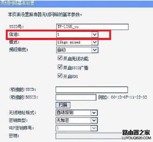 在瀏覽器輸入路由器地址(一般是192.168.1.1或者192.168.0.1)然后輸入用戶名密碼進入路由器界面,找到無線設置菜單,點開,里面有基本設置,安全設置等等。信道一般在基本設置界面里