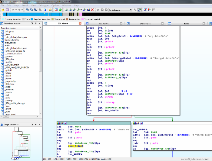 不難看出,要獲得路由器的root shell有兩個條件,一是要插入U盤,這要求能接觸到路由器,同時也防止了遠程利用;二是U盤根目錄下的telnet.boot文件必須是用私鑰加密U盤序列號的結果,而私鑰掌握在生產商手中,黑客不能輕易獲取到。
