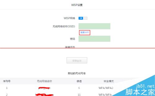 3、點開后,我們先讓路由器搜索一下無線信號,然后選擇我們要連接的信號,錄入密碼,保存生效便可以了。