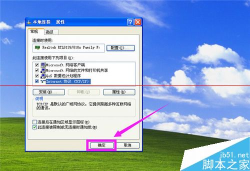 4、最后,在“本地連接 屬性”窗口中,點擊“確定”按鈕。完成IP地址的修改步驟。如圖