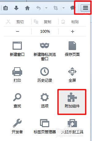 另一種破解騰達路由器登陸密碼的方法是借助火狐瀏覽器中的“Live HTTP”工具來實現。在FireFox瀏覽器界面,點擊“菜單”按鈕,從中選擇“附加組件”按鈕。