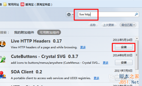 搜索“Live HTTP”組件,并從搜索結果列表中點擊對應項右側的“立即安裝”按鈕進入安裝。